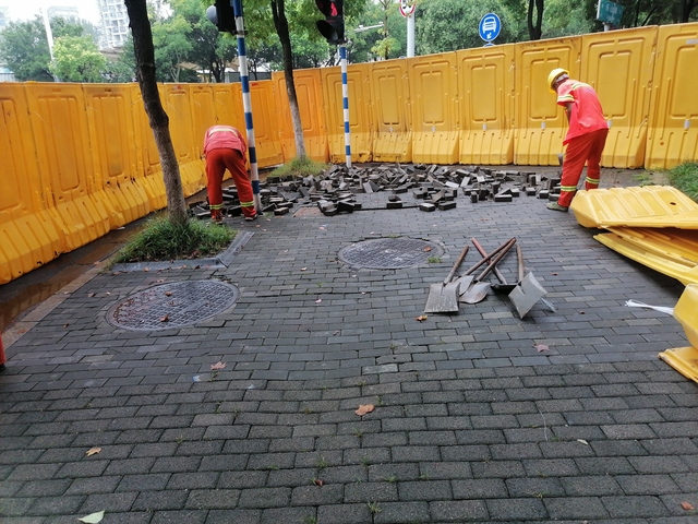 松花江西街是奧體中心片區(qū)成熟的住宅以及學(xué)校片區(qū)道路,兩側(cè)行道樹栽種的是梧桐樹,梧桐樹冠高大,夏季遮陰,冬季透光,但是由于根系發(fā)達(dá),樹根會(huì)鼓出來把人行道磚“拱”起,一些路面變得凹凸不平,影響行人通行和道路美觀。公司市政養(yǎng)護(hù)隊(duì)伍在動(dòng)工前,全面細(xì)致的排查了該路段,對(duì)各類隱患、病害問題進(jìn)行了分類整理,并“一點(diǎn)一案”,制定整治解決方案。