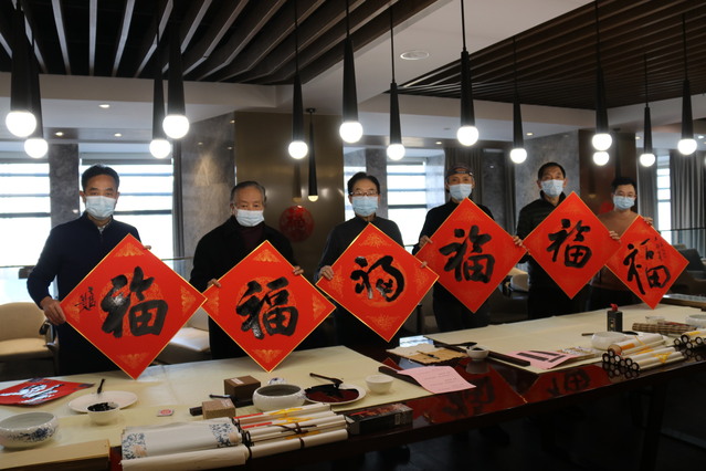 “東風(fēng)化雨山山翠,政策歸心處處春”;“行鴻運年年興旺,迎百福歲歲平安”……一幅幅蒼勁有力的春聯(lián),一句句吉祥喜慶的祝福,一個個手寫的福字,將迎接新春的喜慶傳給大家。