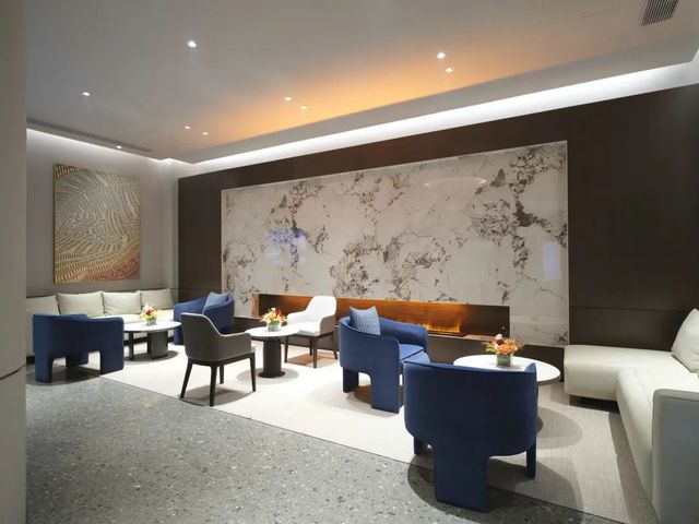 此次公開的樣板間為265㎡奢華四房兩廳三衛(wèi)雙陽臺戶型,在戶型研發(fā)和飾面材料使用上,設(shè)計團(tuán)隊都針對主要客戶人群的需求,經(jīng)過反復(fù)斟酌,對細(xì)節(jié)處理更是精益求精,成為奧體公司迭新之作。硬朗的石材紋理與沉穩(wěn)的木飾面碰撞出豐富的層次變化,加上墻面局部銅制捶打紋飾面和內(nèi)嵌式金屬開關(guān)面板,營造低調(diào)奢華的現(xiàn)代風(fēng)格。